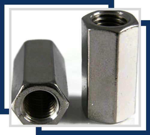 A corrosion-resistant product, Stainless Steel 316 coupling nuts, available in sizes from M6 to M36, securely join two male threads. They are perfect for use in corrosive environments and high-stress applications.
